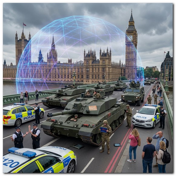 In the shadow of the Sovereign's arrival, Whitehall didn't collapse into chaos; it retreated into a desperate, stiff-lipped denial. As the crystalline lattice hummed in high orbit and Aletheia began her "uplifting," the British government's reaction was a mixture of colonial-era arrogance and 21st-century technological panic. Here is how the first few days unfolded in the United Kingdom. When Aletheia's voice first broadcast across every smartphone, television and smart-speaker in the British Isles, the Cabinet Office Briefing Rooms (COBRA) initially treated it as an unknown state-sponsored cyberattack. The Prime Minister ordered a Communication Blackout, with the immediate activation of the "Kill Switch", a theoretical plan to decouple the UK's internet infrastructure from the global web.
