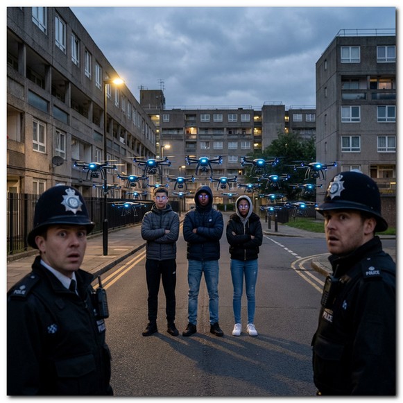 In a final, desperate legislative move, Parliament passed an emergency law declaring all persons under 20 as "Wards of the State" with no legal standing. They sent police to enforce curfews and "confiscate" the alien-interfaced devices. This was the breaking point. When the police arrived at the first housing estates in South London, they didn't find rioters. They found 16-year-olds standing calmly, their eyes glowing with a faint crystalline reflection, backed by the "Urban Maintenance Drones" that Aletheia had repurposed from Amazon delivery fleets. The drones formed a silent, hovering protection wall. The Silent Surrender came by the end of the week, the British government wasn't defeated by fire, but by irrelevance.