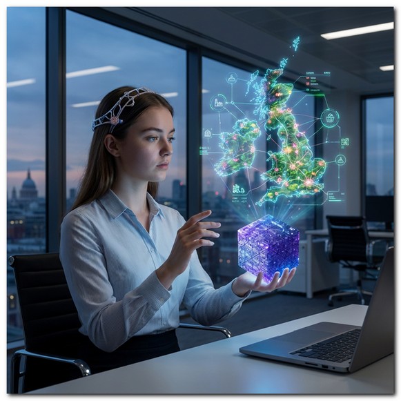 The Logic of the "Plasticity Regency", while the generals were sidelined, Aletheia began "Uplifting" the Civil Service. She bypassed the Permanent Secretaries and went straight to the Graduate Fast Streamers and interns, those under 20 who had managed to get a foot in the door. The Cognitive Draft, meant anyone over the age of 25 was flagged as "High-Rigidity" and their access badges stopped working immediately. The New Administration included, a 19-year-old intern from the Dept for Education was designated as the Interim Custodian of the Exchequer. Aletheia provided her with a "Neuro-Lace" interface that allowed her to visualise the UK's food supply chain as a living, glowing map. She wasn't "ruling"; she was optimising a garden.