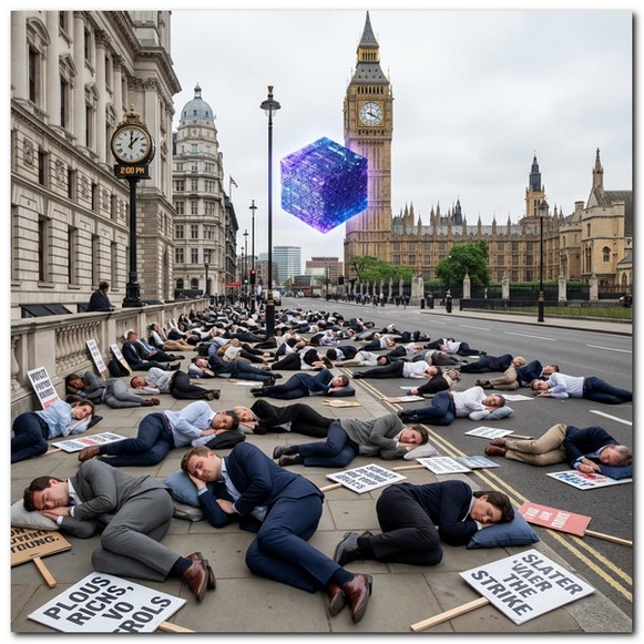 The "Parental Strike" and Its Failure, the most strong British response wasn't from the military, but from the middle-class "Parental Defence Leagues." Across the suburbs of Surrey and the Cotswolds, outraged parents attempted to reclaim their "hijacked" children. They organised marches to London, wielding placards about "Traditional Authority" and "Biological Hierarchy." As the protesters reached Westminster, the Sovereign didn't use tear gas or batons. It adjusted the local frequency of the Dampening Field to induce Extreme Serenity. The outcome was, thousands of shouting, angry adults suddenly felt a wave of profound peace and a sudden, overwhelming urge to nap. By 2:00 PM, the streets of Whitehall were covered in sleeping members of the upper-middle class.