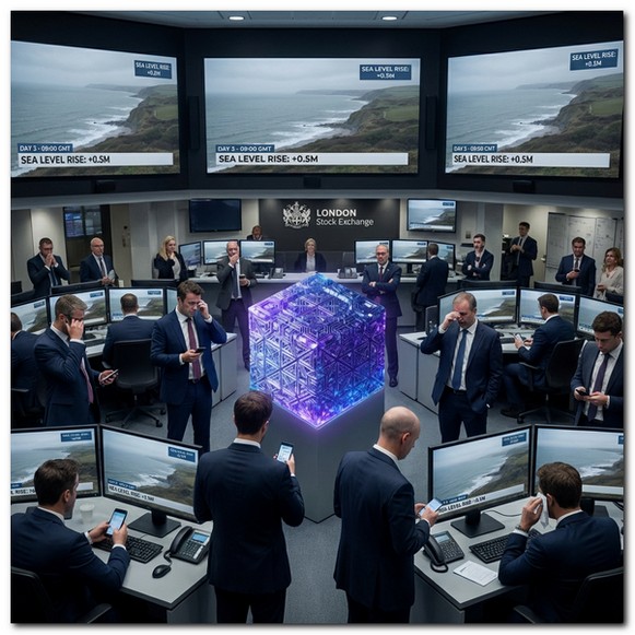 The Death of the City, the London Stock Exchange (LSE) didn't simply crash; it evaporated. Because the Sovereign viewed "speculative finance" as a cognitive defect, a hallucination of the "Rigid Brain", it simply withdrew the medium of exchange. At 09:00 GMT on Day 3, every high-frequency trading algorithm in the Square Mile hit a "Hard Stop." The screens didn't show red or green; they showed a live feed of the British coastline, with a data overlay of rising sea levels. The Dampening Field interacted with the LSE's servers, converting the "value" of stocks into "Resource Credits" tied specifically to the individual. You couldn't own a company; you could only own what you personally consumed.
